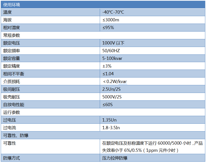 电容器内部填充以N2(阻燃)为主的复合型环保气体,气体密度跟大气压相近,自身不会产生压力,运行安全可靠。内部充入的惰性绝缘气体减少了电容器的介质损耗,运行时电容器本身不发热,提高了运行的可靠性。