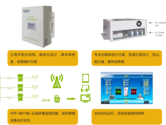 WX-APF有源滤波器模块是一种用于动态抑制谐波的新型电力电子装置,它能够对不同幅值和频率的谐波进行快速跟踪补偿,装置通过内部检测电路分离出其中的谐波部分,是采用现代电力电子技术和基于高速DSP器件的数字信号处理技术制成的新型电力谐波治理专用设备。它由指令电流运算电路和补偿电流发生电路两个主要部分组成。指令电流运算电路实时监视线路中的电流,并将模拟电流信号转换为数字信号,送入高速数字信号处理器(DSP)对信号进行处理,将谐波与基波分离,并以脉宽调制(PWM)信号形式向补偿电流发生电路送出驱动脉冲,驱动IGBT功率模块,生成与电网谐波电流幅值相等,极性相反的补偿电流注入电网,对谐波电流进行补偿或抵消,主动消除电力谐波。